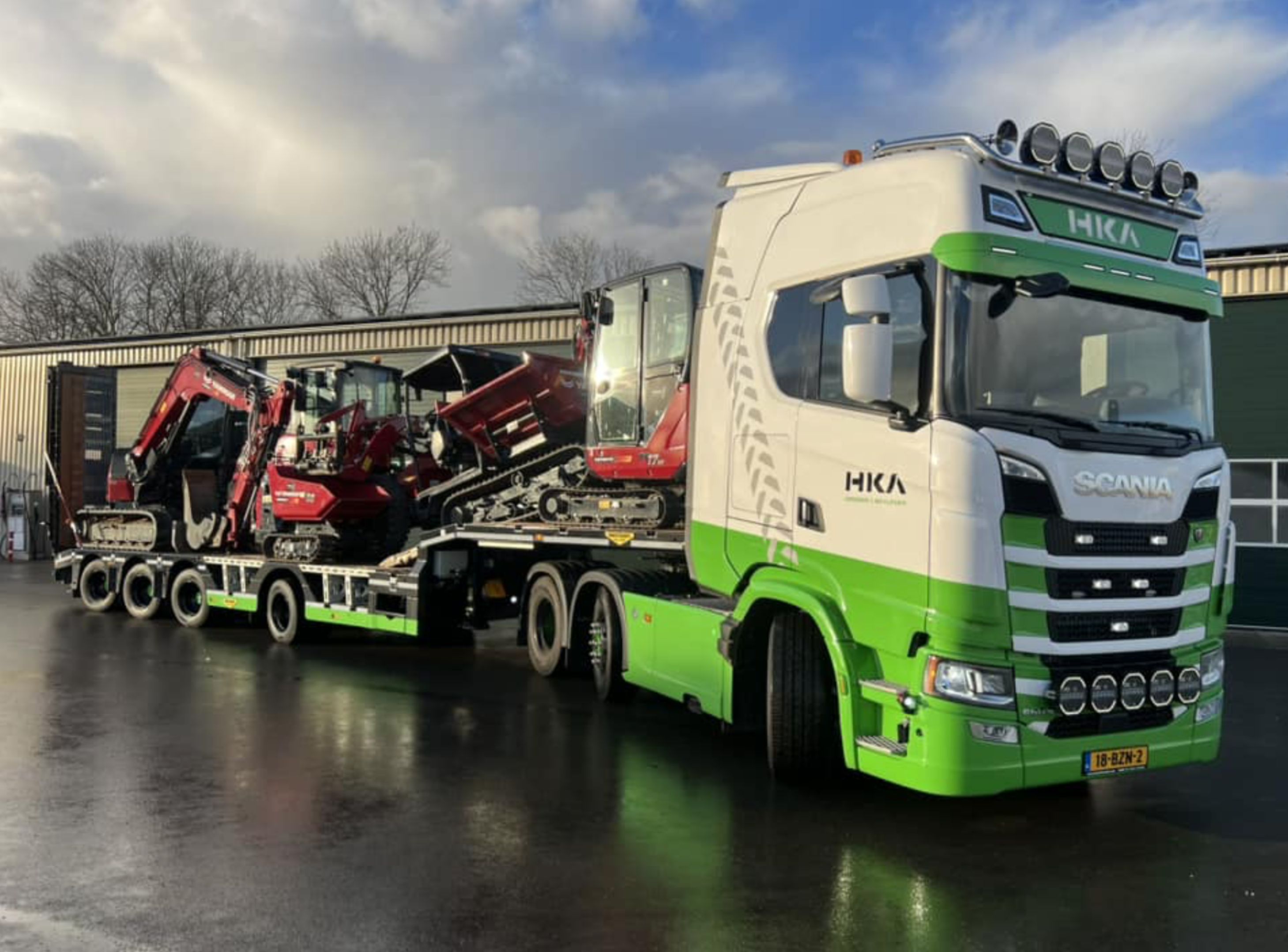 Na ruim 10 jaar trouwe dienst met de 3-assige dieplader hebben we geïnvesteerd in een nieuwe en zeer veelzijdige combinatie.
